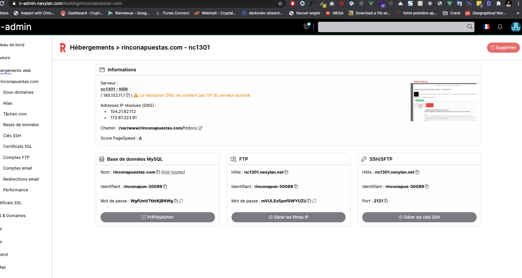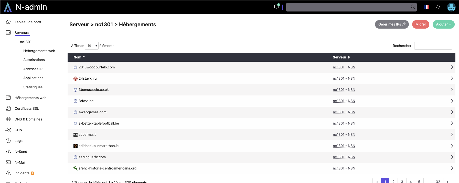 Puis rendez-vous dans la section "Hébergement web", pour le nc1301 : (https://n-admin.nexylan.com/servers/nc1301/hosting/)