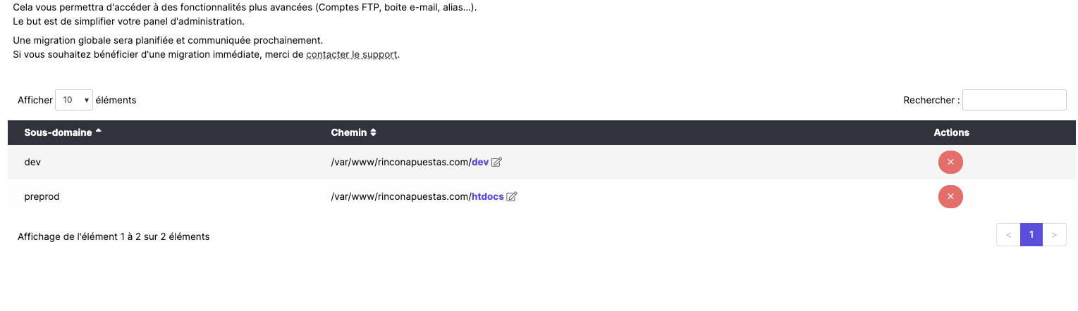 Une fois ok côté migration, rendez-vous sur le site fraîchement créé sur l'interface de Nexylan dans la section sous-domaines :