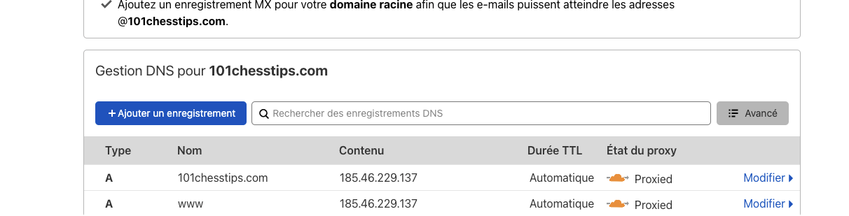 Vous pouvez ensuite tester votre migration en ajoutant l'ip et domaine dans votre host en local. Une fois que tout est ok, rendez vous sur cloudflare, et faite la bascule vers nos serveurs.