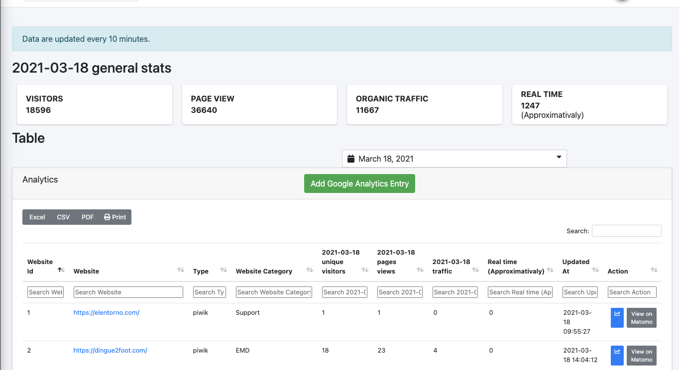 Click on "Add Google Analytics Entry"