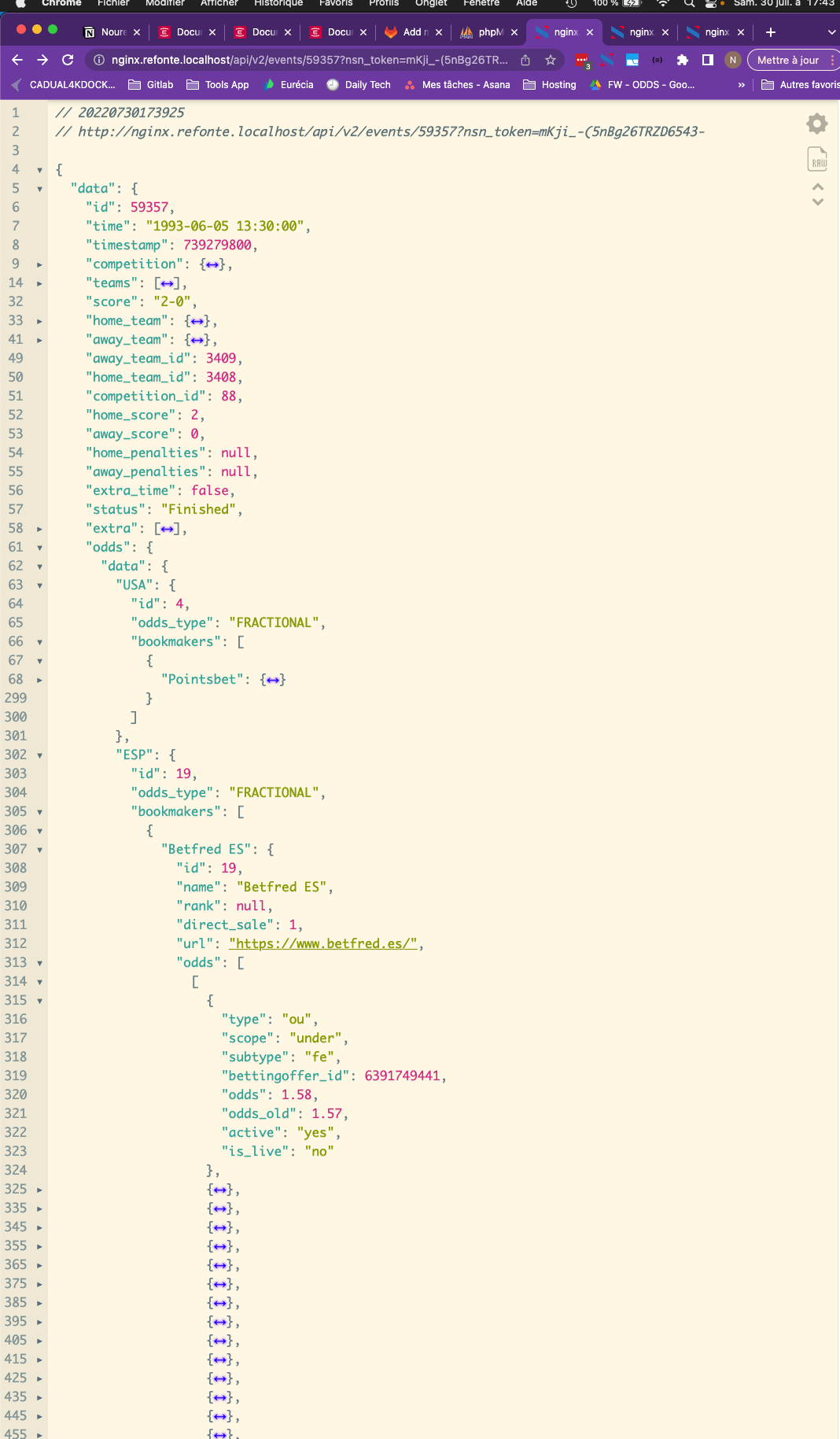j’ai rajouté la relation avec les bookmakers/providers ! pour le test, il faudra juste trouver un event qui a des odds d’enetpulse, ça ressemblera à ça :