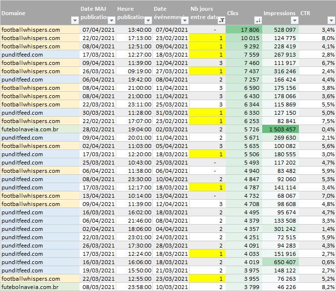 Les chiffres obtenus sont extraits de la Google Search Console sur une durée de 3 mois (du 13/01/2021 au 12/04/2021).