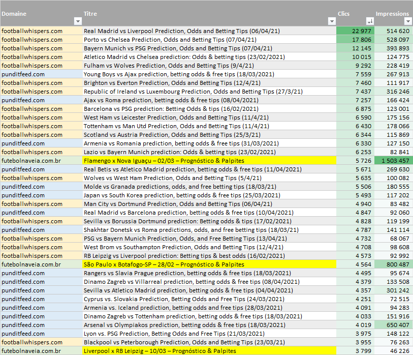 Etude effectuée sur 4 sites internet sur lesquels des articles de type "pronostics" ont été publiés depuis le début de l'année 2021 :