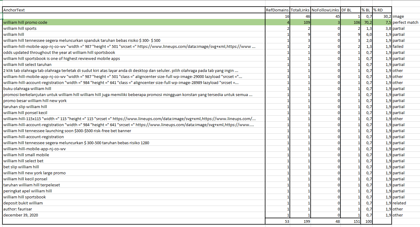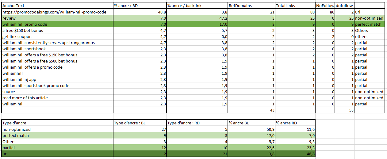 Be careful: If you are targeting "William hill promo code", it does not mean that "sports betting" is a non-optimized anchor. Check semantic to get ideas, and create anchors with at least 3 / 4 words when you are working this way.