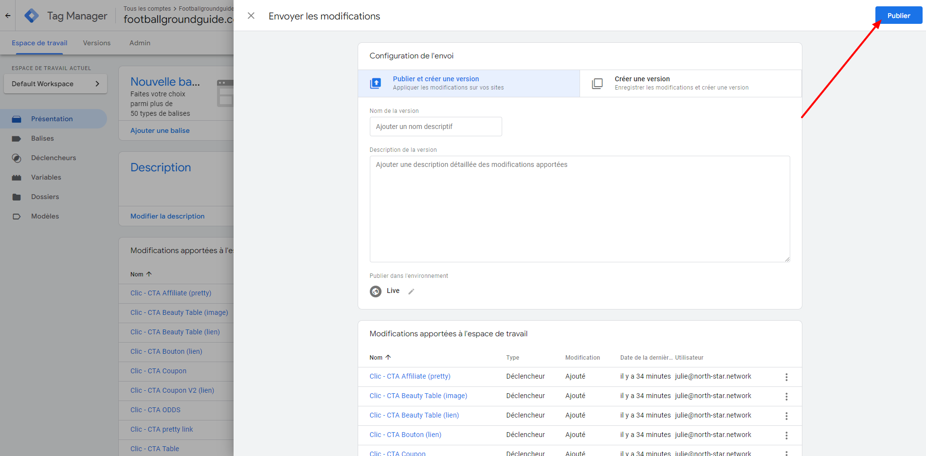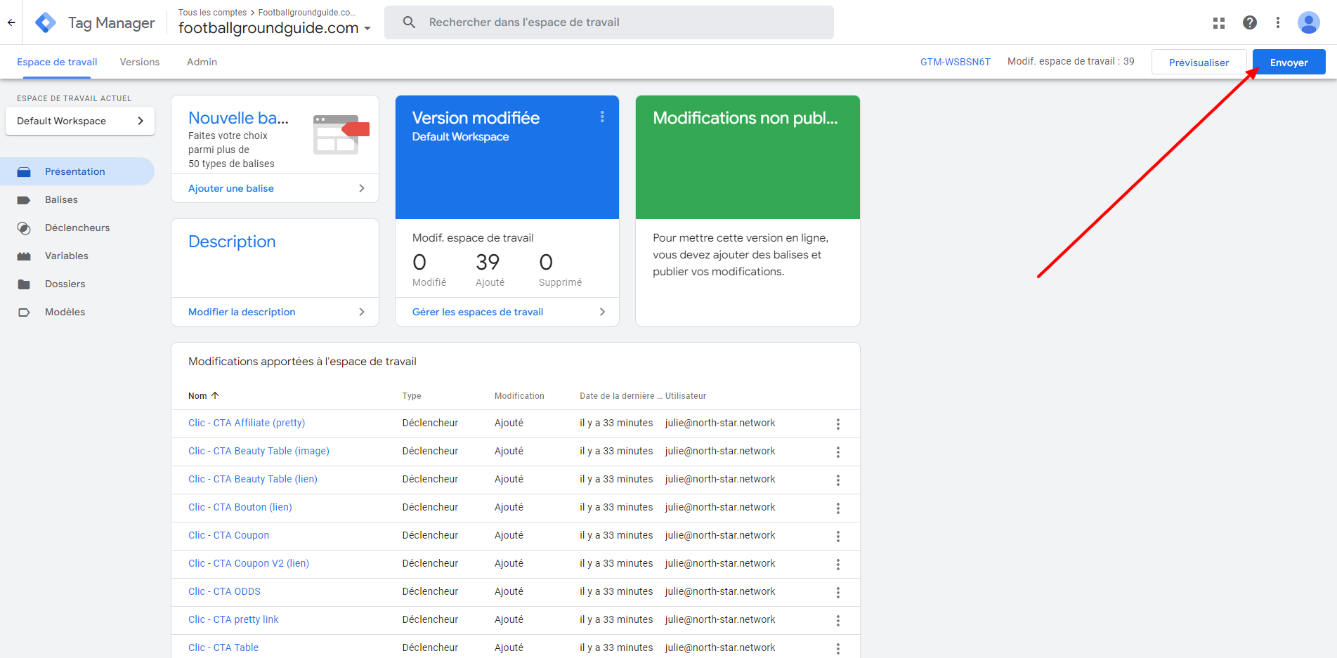 - De retour dans l’espace de travail, cliquer sur “Envoyer”