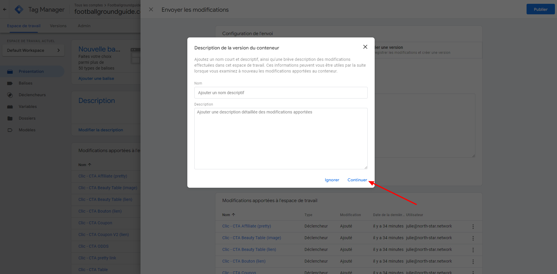 - Sauvegarder précieusement les deux tags de tracking dans un .txt et les mettre dans la tâche Asana sous le nom “Domaine - head” et “Domaine - body”