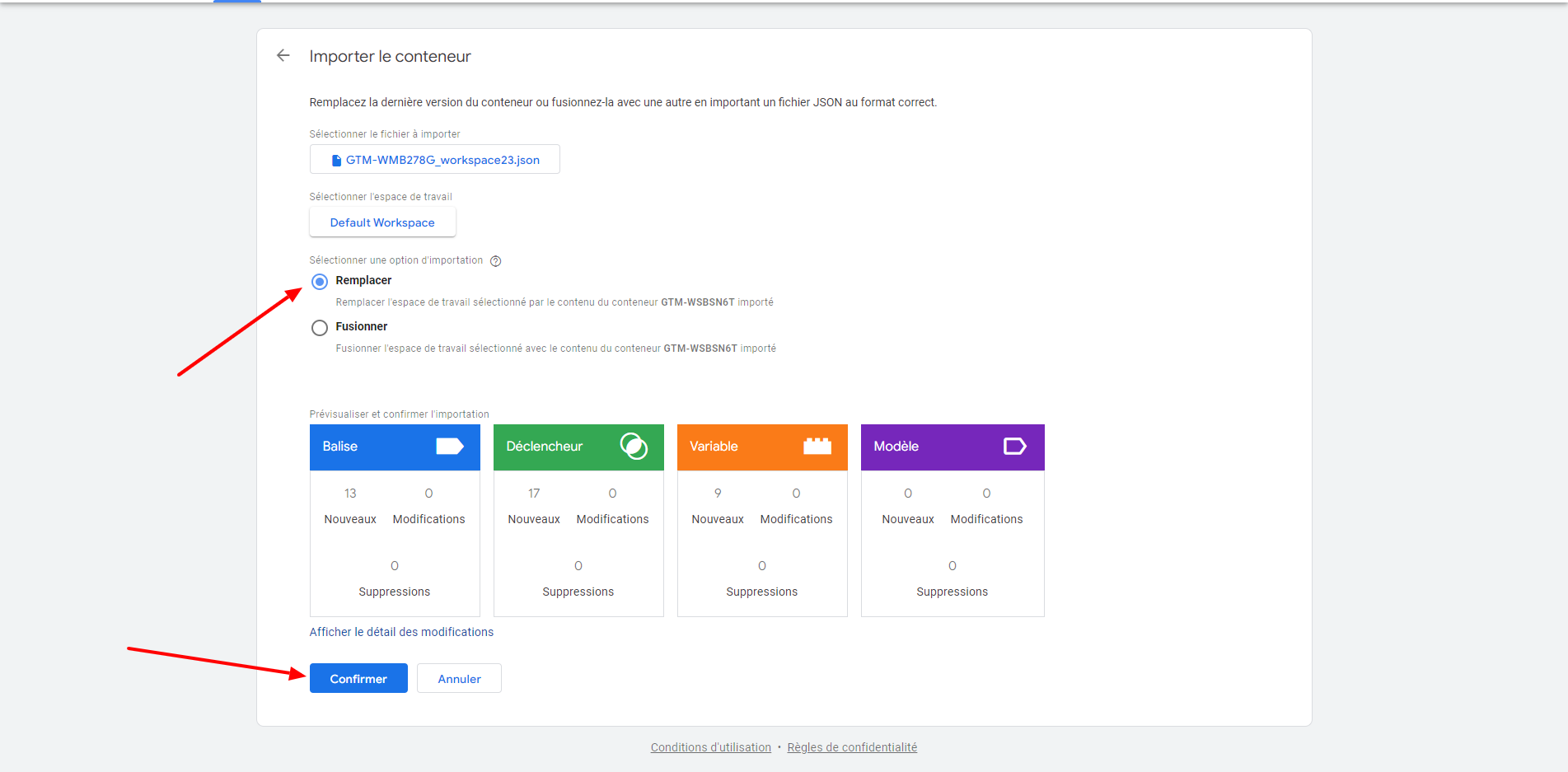 - Aller dans l’onglet “Admin” puis cliquer sur “Importer le conteneur”