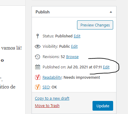 ⚠️⚠️⚠️ When you refresh this date, it should never be in the future : otherwise your article will be drafted ! And redirecting to the homepage of the website.