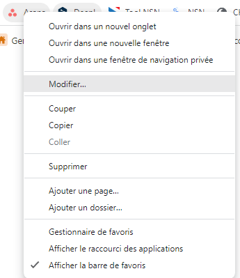 - clic droit sur lâonglet ajoutĂ© en favori (depuis la barre des favoris ou du menu dĂ©roulant)