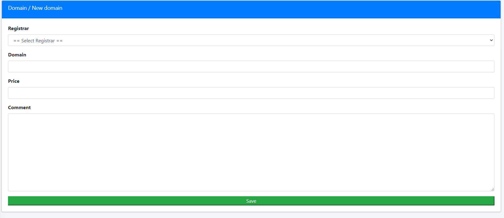 - If the site has already been migrated you select the right registrar in the "Registrar" area. Then you complet with the Domain + the price.