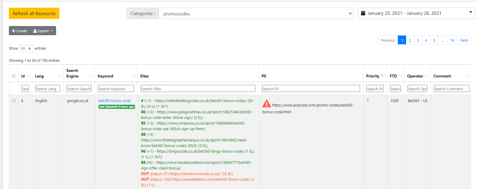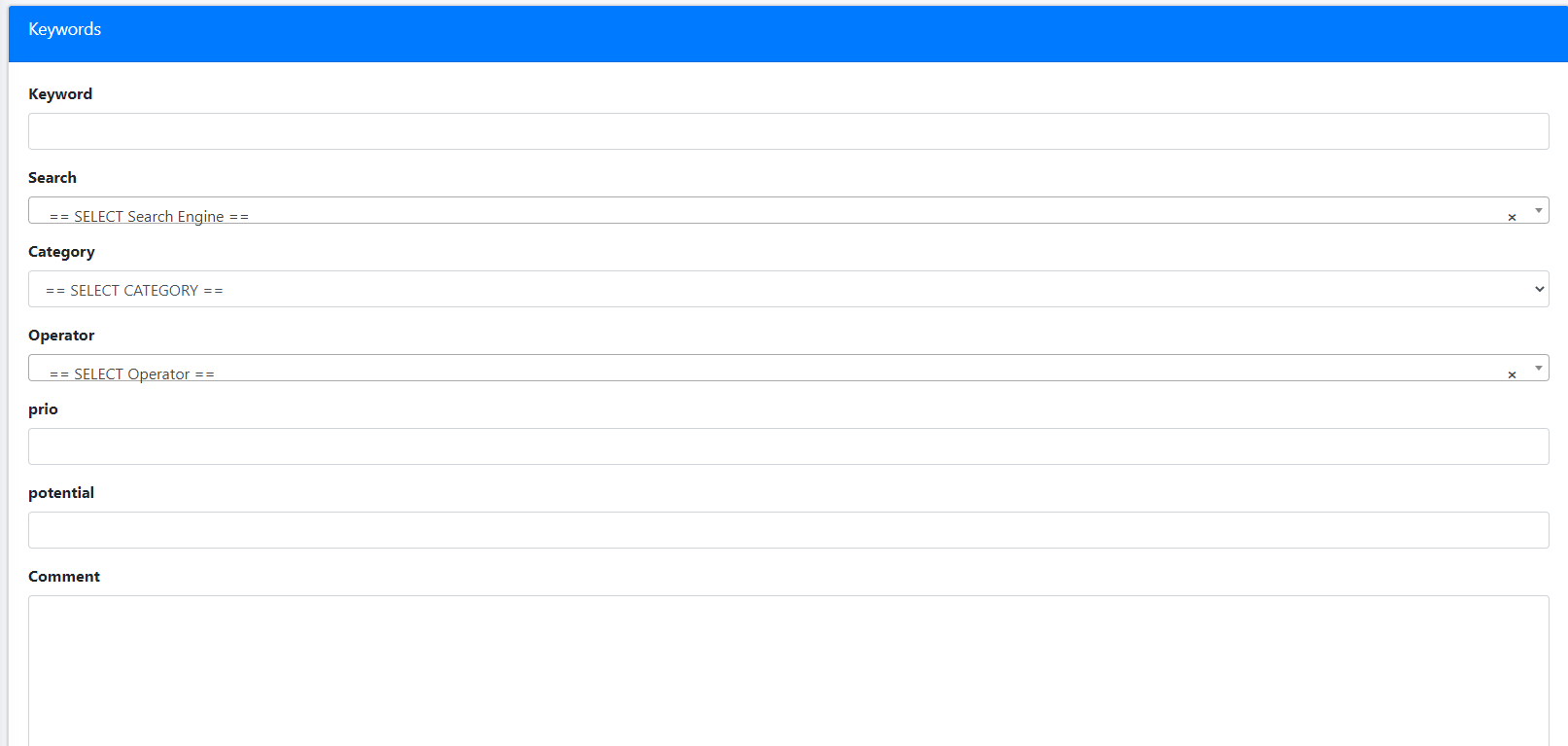 Otherwise you will have to enter new keywords in the "Keywords" section. SEO > Keywords > Create.