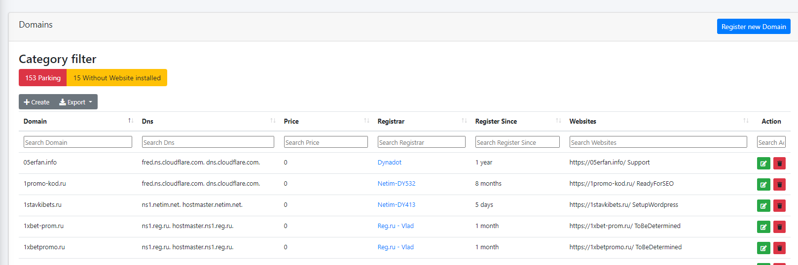 - The site has not been migrated, for example when we do "White Label" you can select a random Registrar. Then you enter the domain + price. If we decide to buy the site afterwards, you will have to contact the technical department in order to make the migration.
